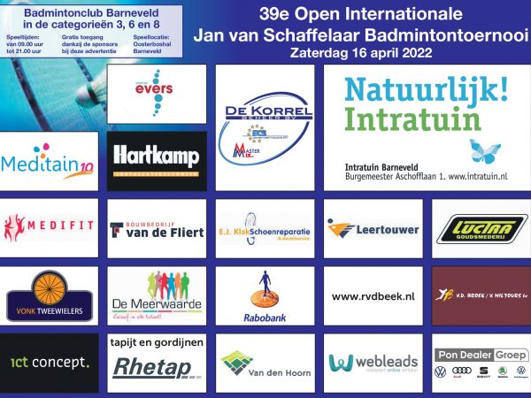 Dankzij onze fantastische sponsors kunnen we op zaterdag 16 april ons 39e Jan van Schaffelaar toernooi organiseren en spelen!